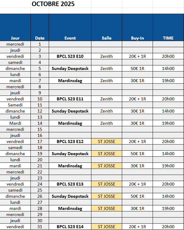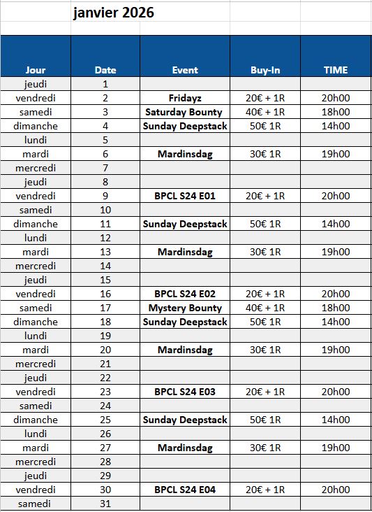 Notre calendrier est dans Pokergeek.be https://pokergeek.glideapp.io